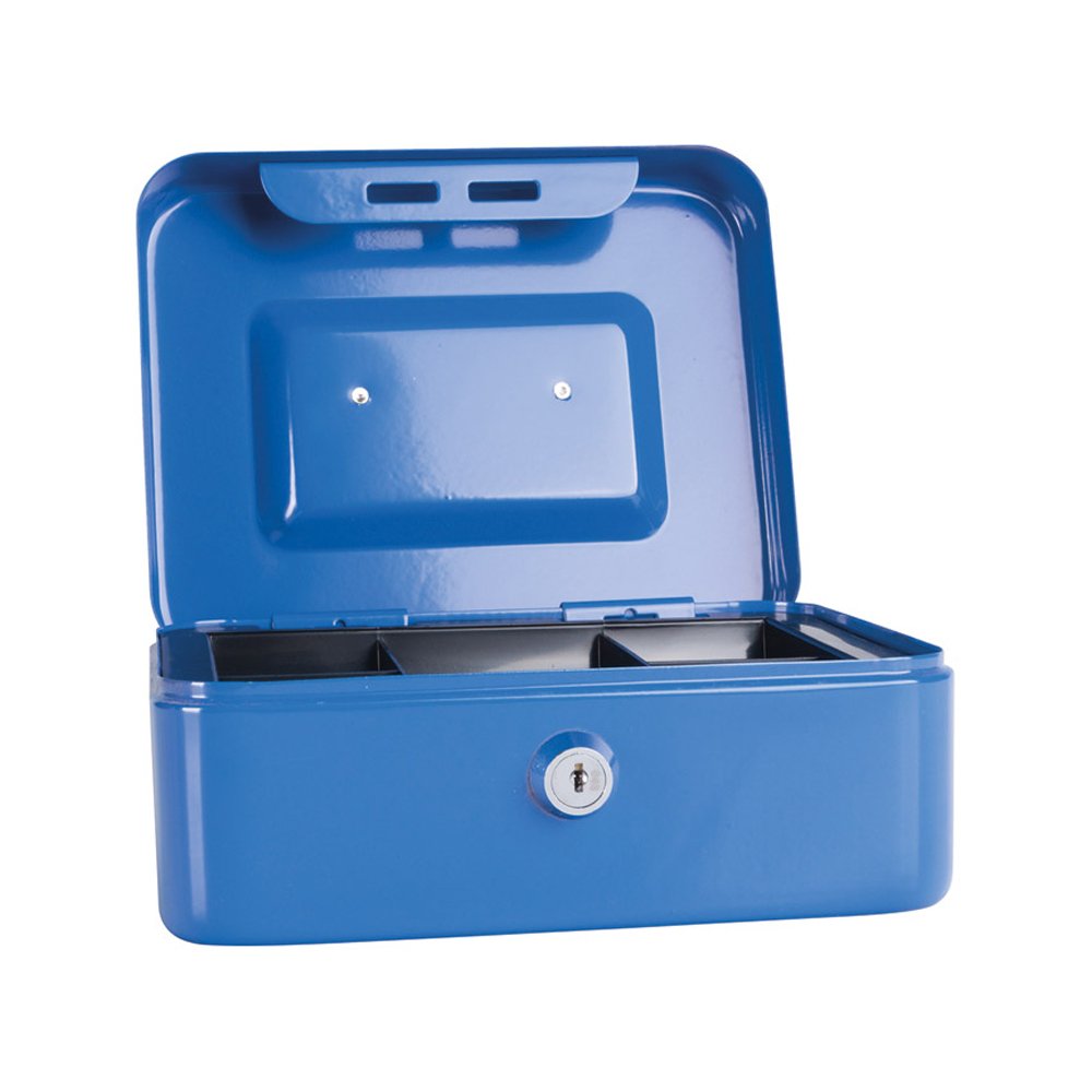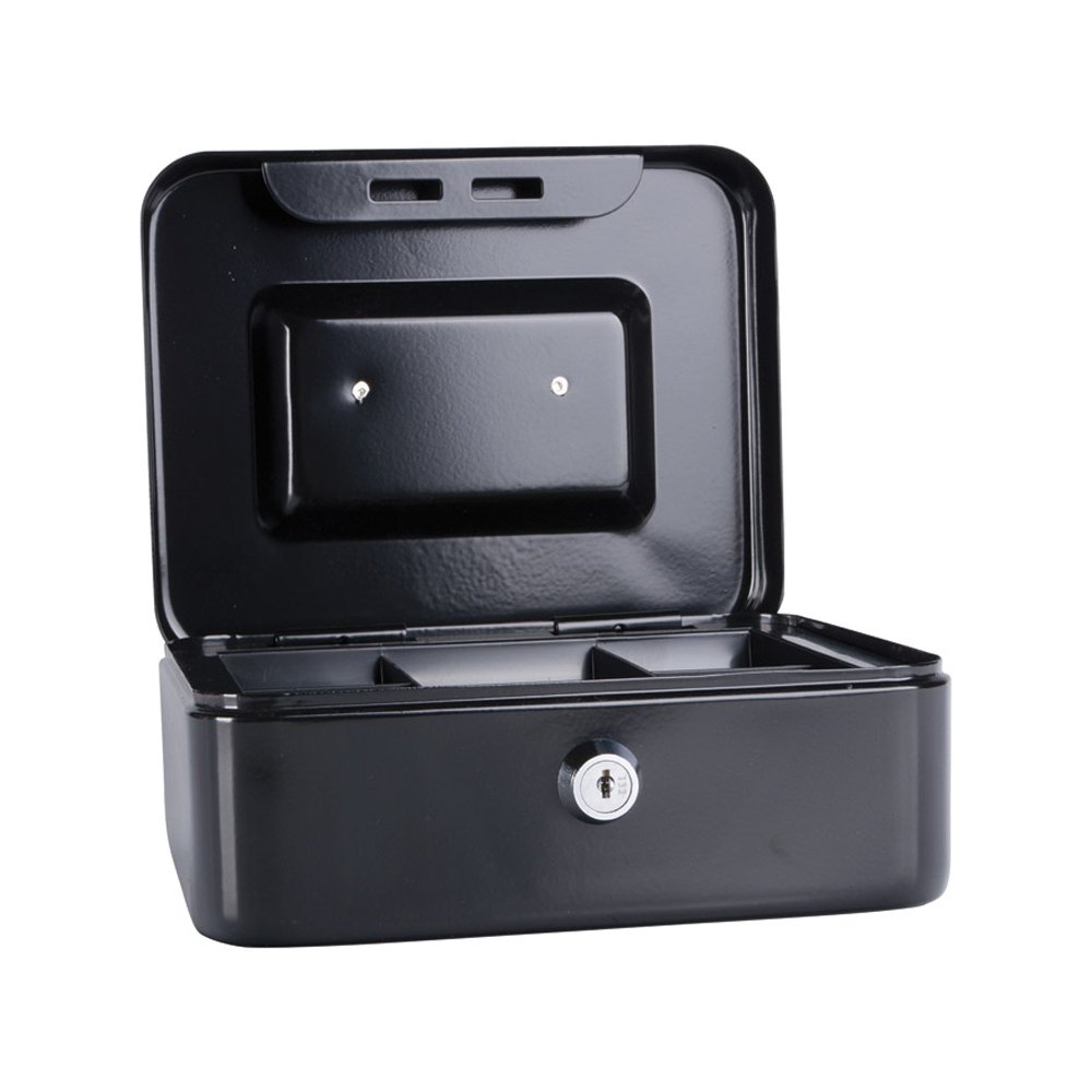 Prenosiva metalna kasa ima dva ključa i plastični uložak za sortiranje novčanica