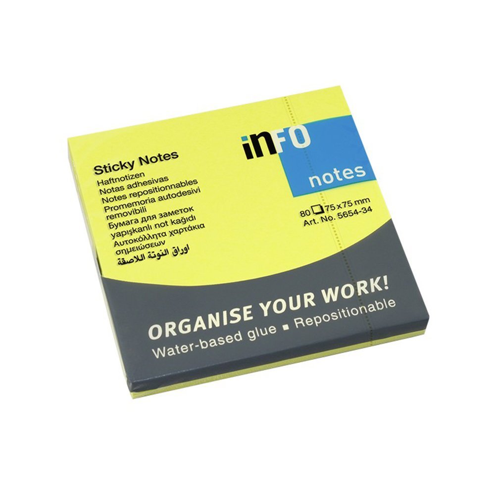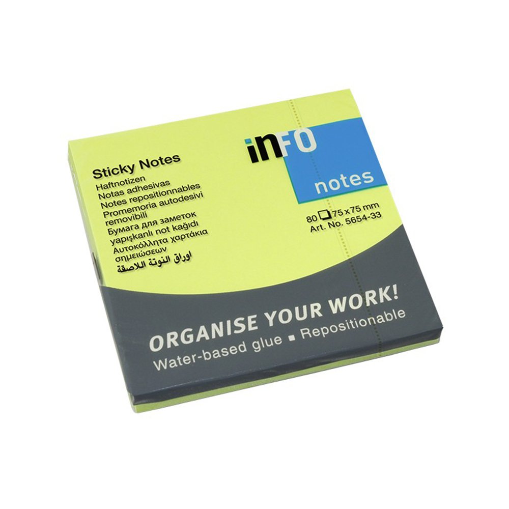 Samolepljivi listići Info Notes 80 lis, 75x75mm neon