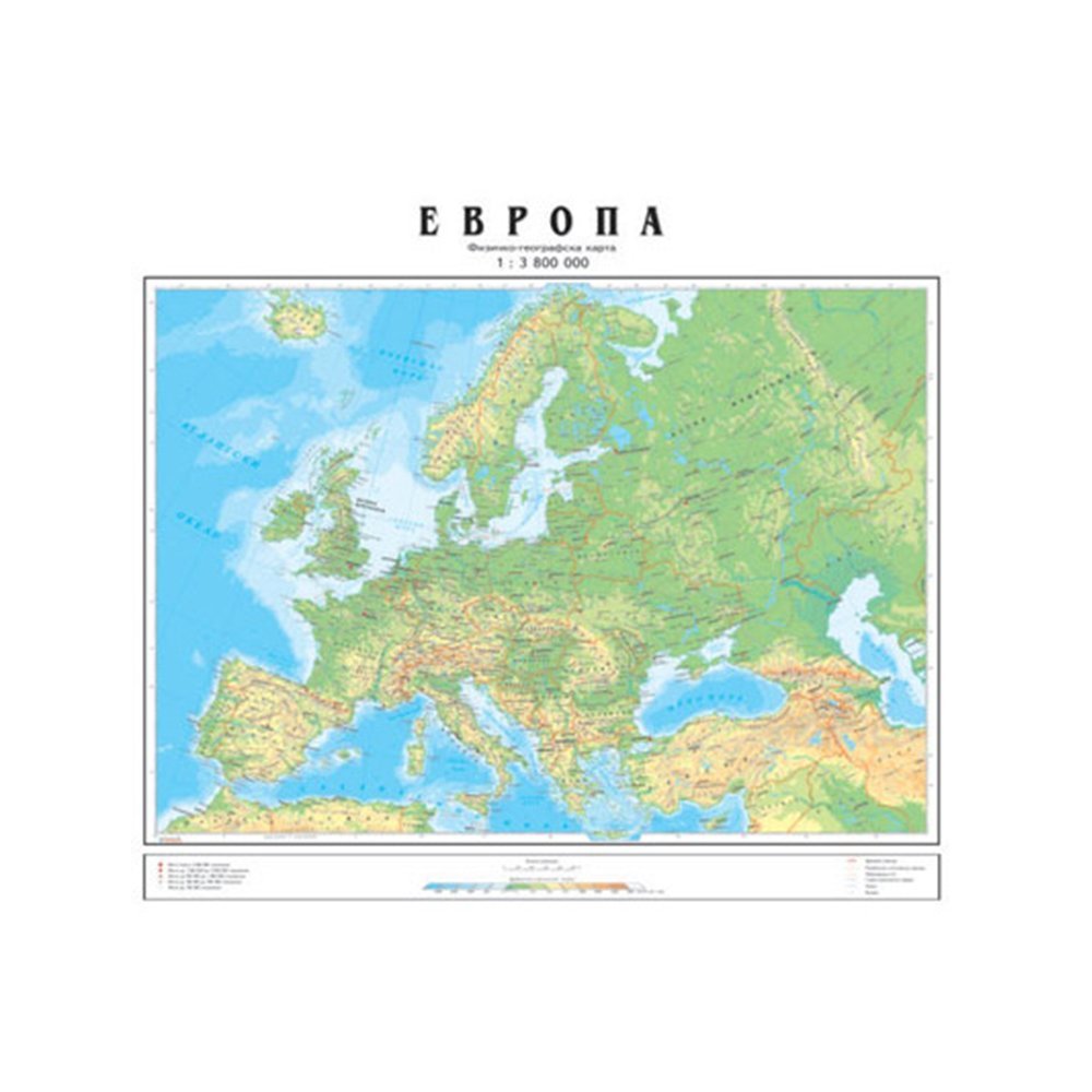 Školska fizičko-geografska karta Evrope 1747x1580mm